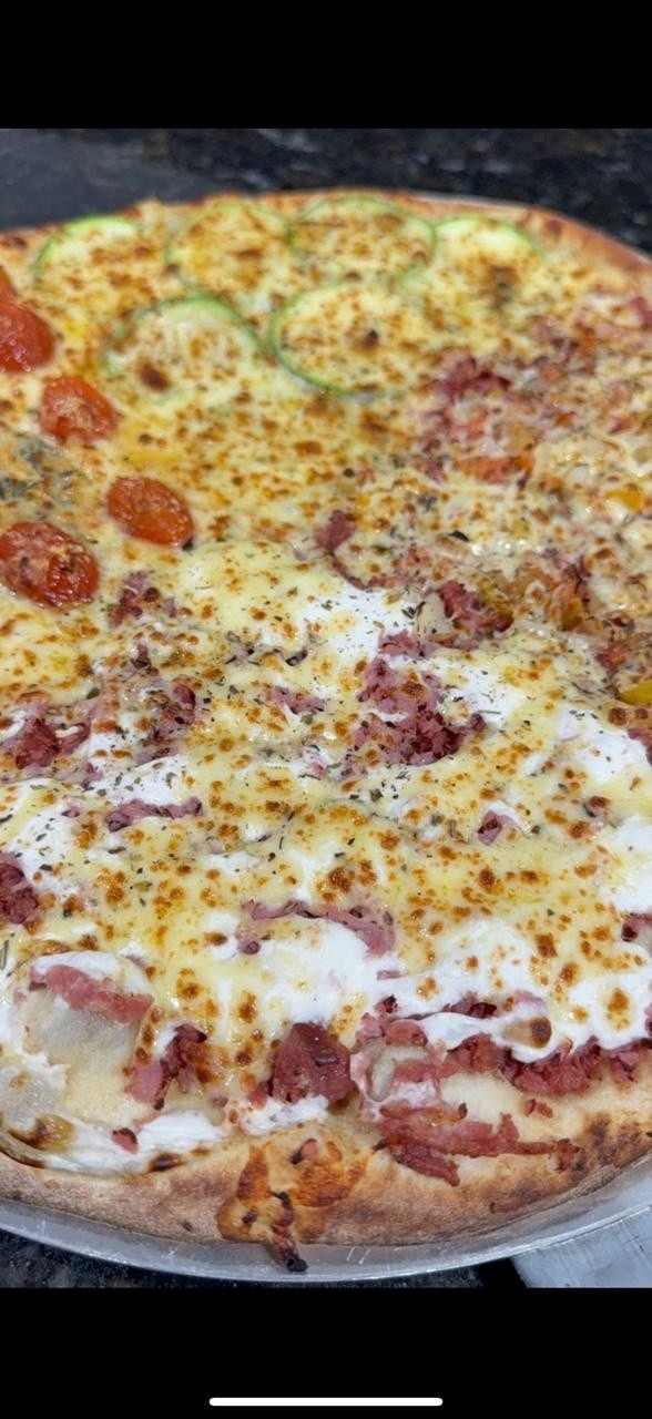 Mussarela, Orégano, Creme de Leite, Calabresa ralada, Presunto ralado