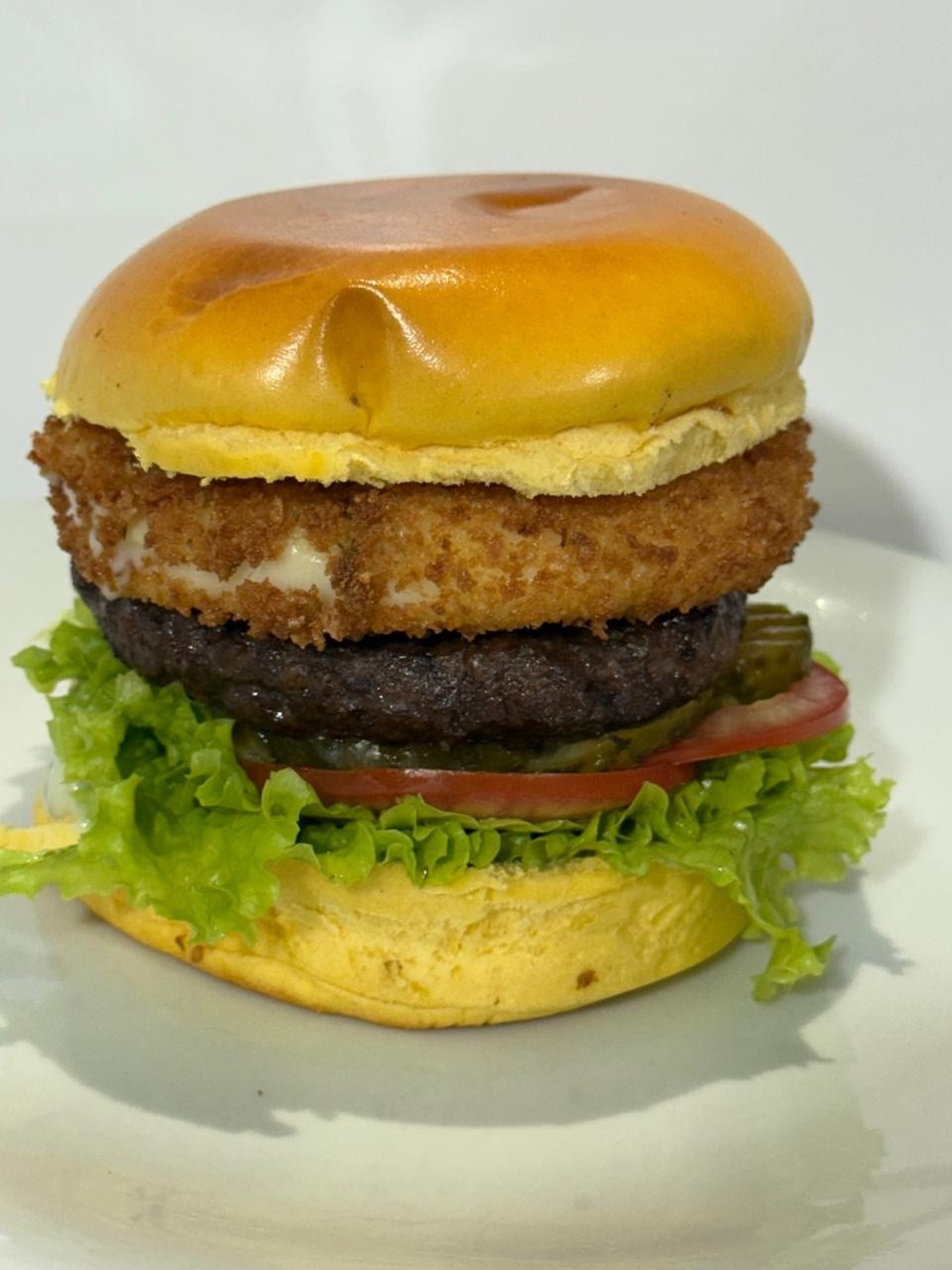 Pão, Queijo cheddar, Catupiry original empanado, Hambúrguer de 150g, Molho chipotle, Acompanha 150g de batata frita