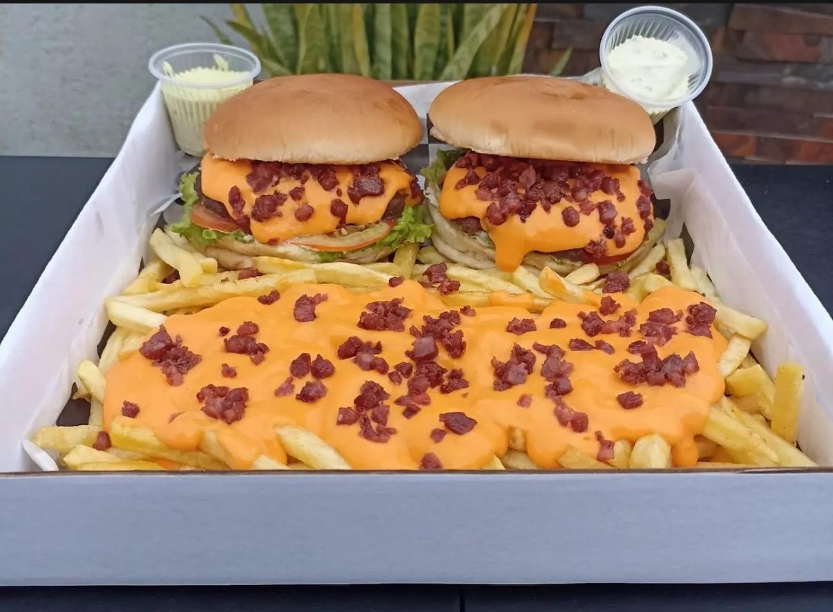 2 Lanches:, Hambúrguer de Costela 140g, Cheddar Cremoso, Alface, Tomate, Maionese, Bacon, Acompanha: 250g de Batata Frita com Cheddar e Bacon, + 1 coca cola 600ml.
