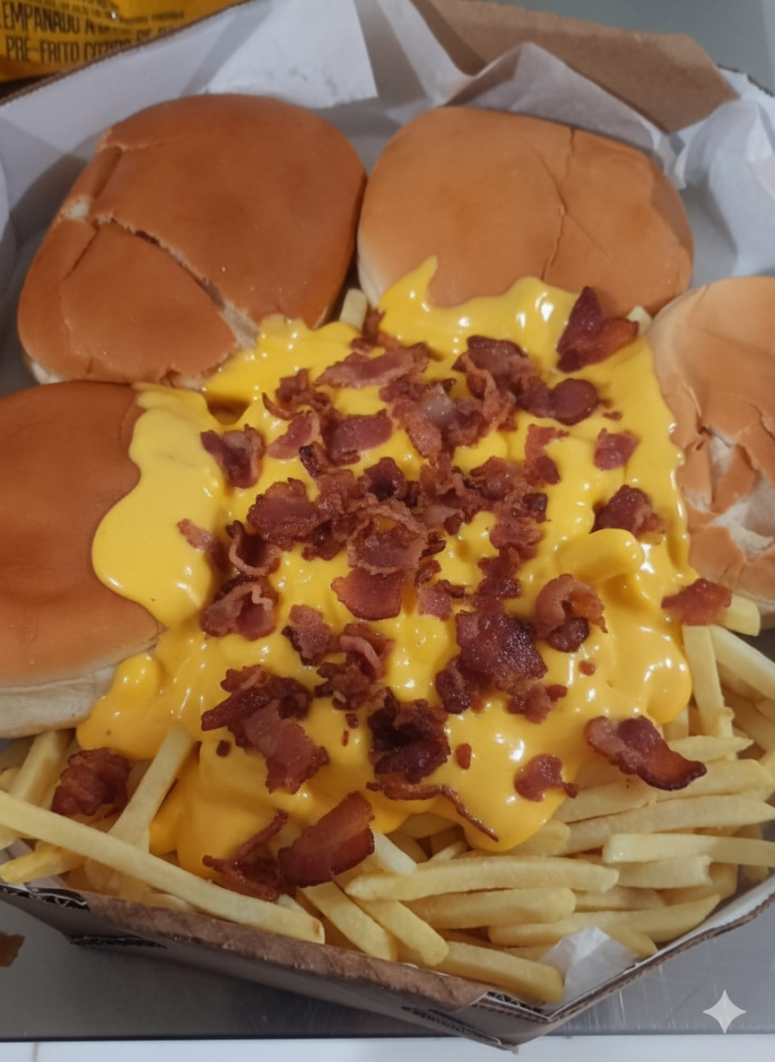 4x Salada, Acompanha: 500g de batata frita coberta com cheddar e 200g de bacon