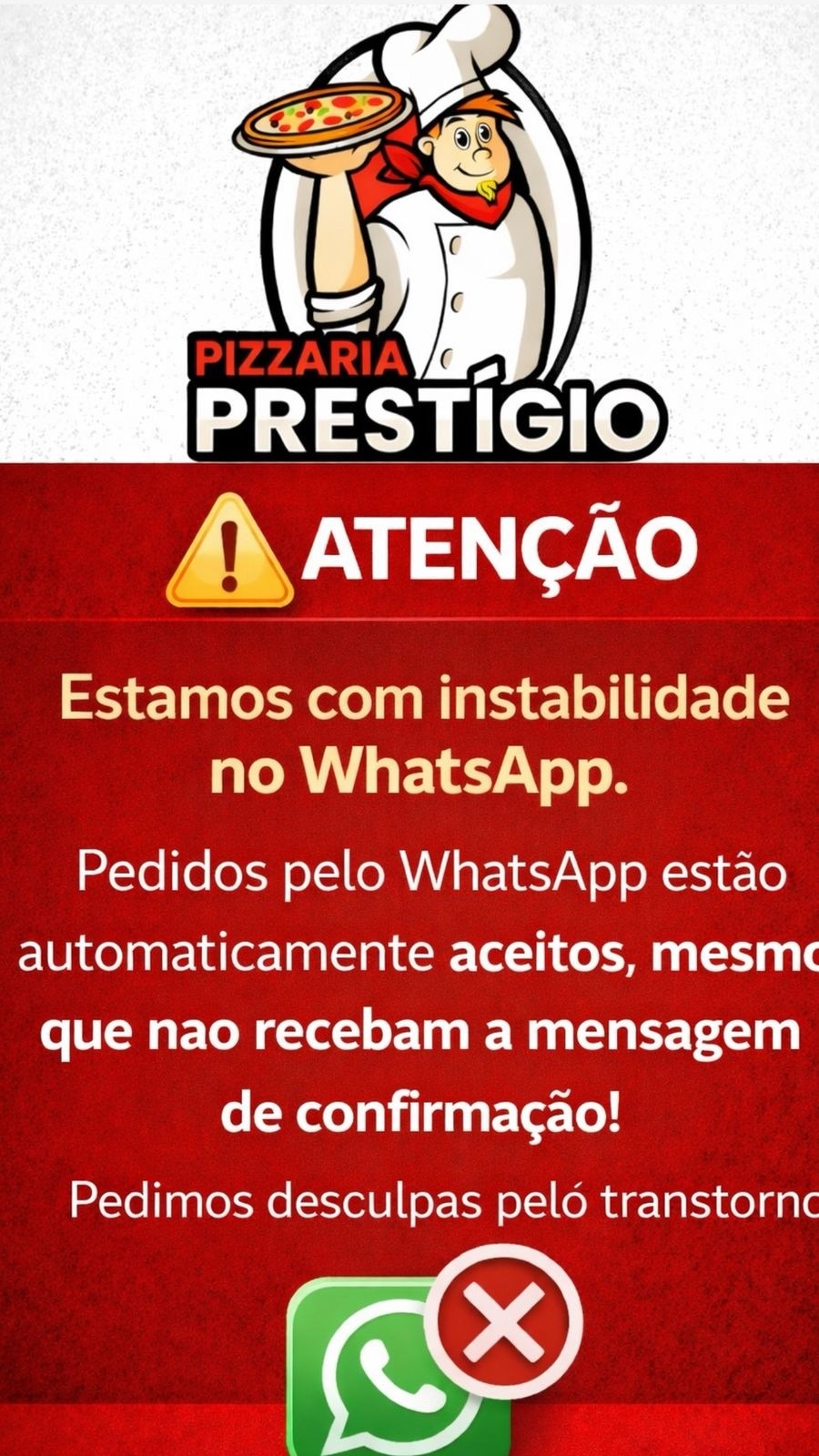 Pedidos feitos pelo sistema estão automaticamente aceitos, mesmo sem confirmação pelo Whatsapp - .